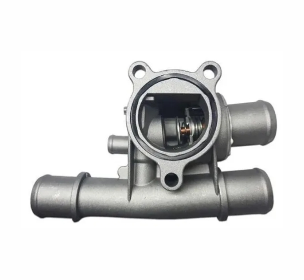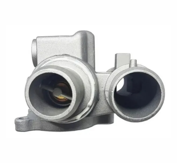 Carcaça da válvula termostática responsável por alojar a válvula e conduzir o fluxo do líquido de arrefecimento no sistema de refrigeração do motor.